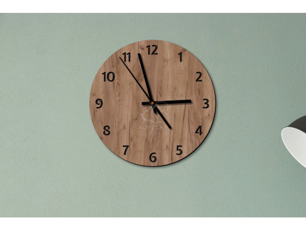 Na úvodnom obrázku sú hodiny v dekore dub tabakový s čiernym ciferníkom.
