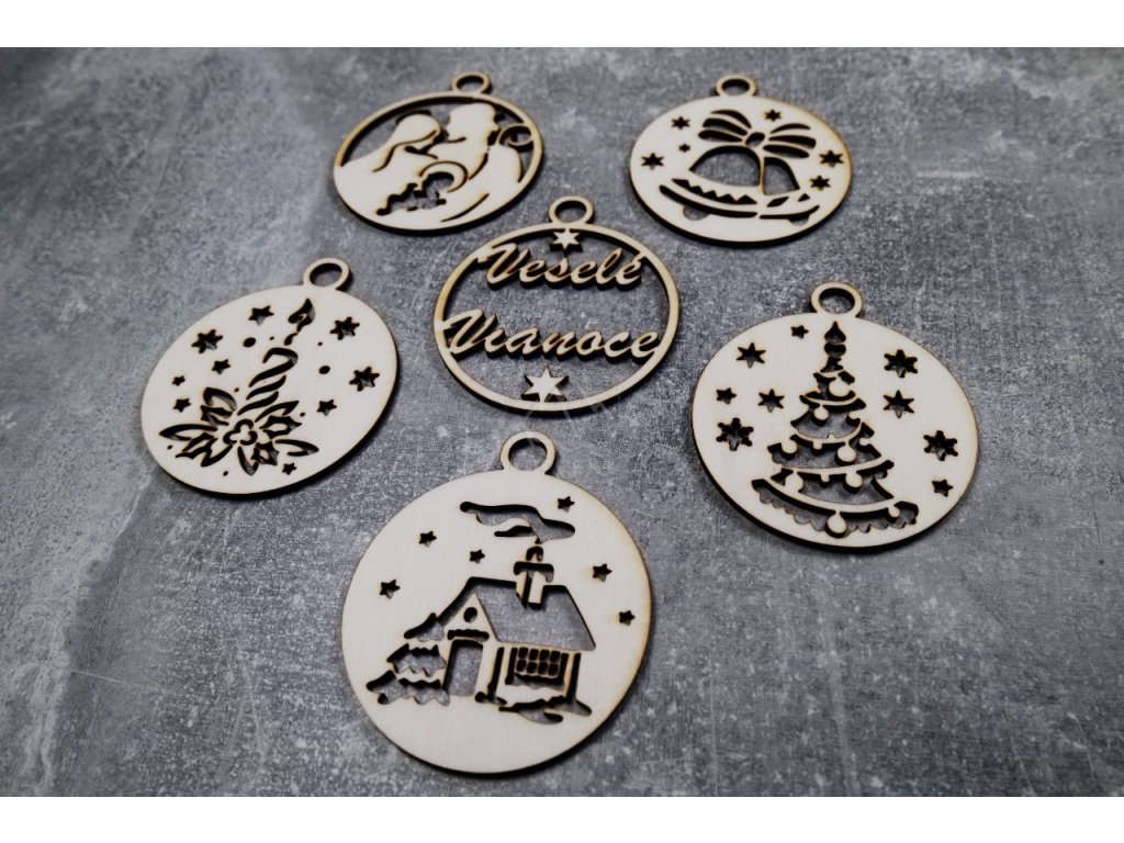 Drevené vianočné gule na stromček. Sada 6ks s možnosťou dodania v gravírovanej krabičke.