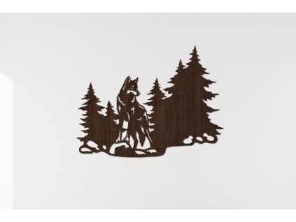 Vlk dravý je symbolom odvahy a rešpektu. V našich lesoch je vzácne ho vidieť na vlastné oči. Patrí medzi zvieratá, ktoré sú natoľko inteligentné a obozretné, že je veľmi ťažké ho zahliadnuť vo voľnej prírode. Aj vďaka týmto vlastnostiam je pre mnoho ľudí akýmsi symbolom alebo vzorom. Náš drevený obraz je tvorený precíznou siluetou vlka s vyloženými prednými nohami na kameni. Vlk vyšiel z ihličnatého lesa a stojí na okraji lúčky s dobrým výhľadom okolo seba. Celkovo sa obraz vyníma modernými tvarmi bez klasického obdĺžnikového alebo kruhového ohraničenia. Tento zaujímavý doplnok sa hodí nie len do izby každého milovníka prírody a hôr ale aj ako zaujímavý darček pre známeho.